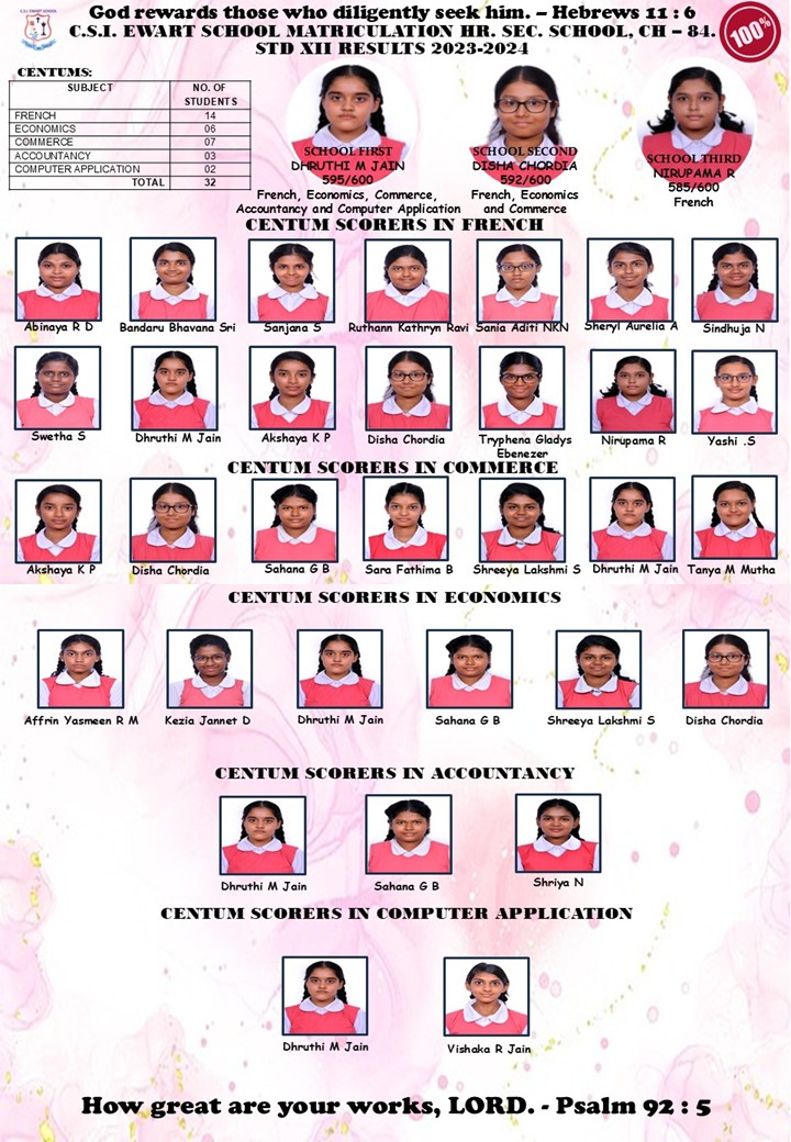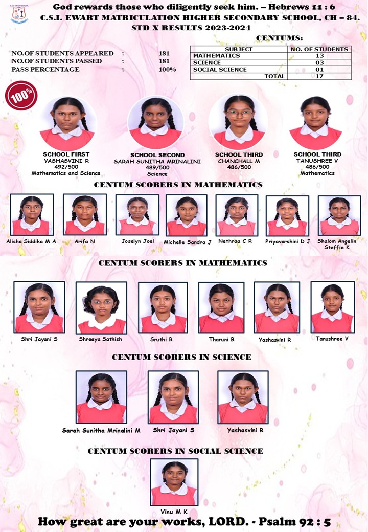 As I look to the future, I am committed to building on the foundations laid by my illustrious predecessors, who have shaped this institution into the esteemed place of learning it is today. My promise to you, our stakeholders, is to work tirelessly to propel CSI Ewart Matriculation Hr. Sec. School to even greater heights, fostering a culture of excellence, inclusivity, and compassion.